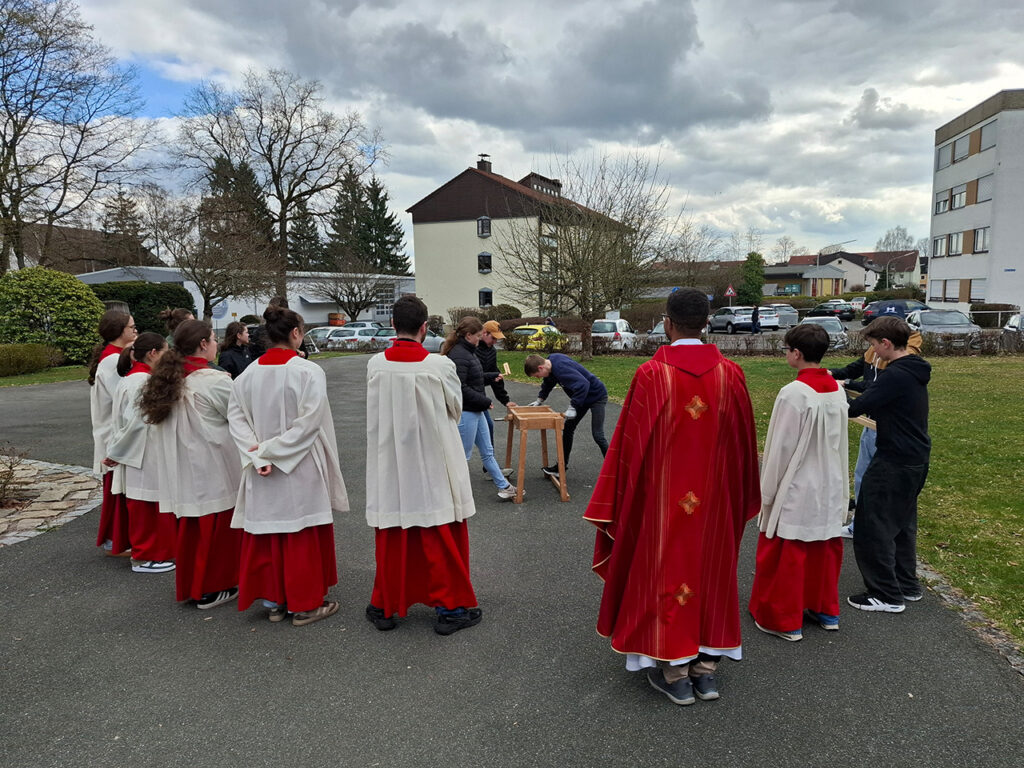 Am Karfreitag startete die Gemeinde um 9.00 Uhr mit einer besinnlichen Kreuzwegandacht, anschließend beteten Kinder und junge Familien einen Kreuzweg. Im Anschluss daran wurde allen Kommunionkindern unserer (Teil-) Pfarreiengemeinschaft ein gesegnetes Kreuz aus Jerusalem überreicht.